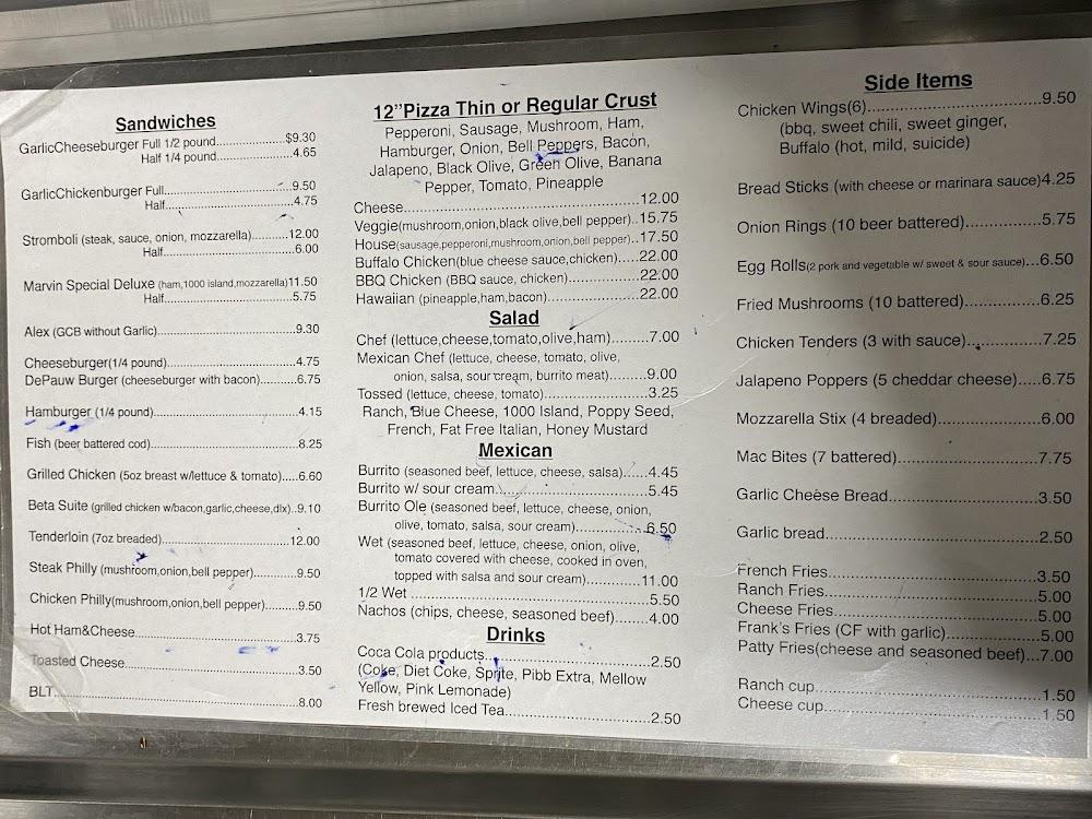 Welcome to Marvin's, your go-to destination for delectable American cuisine located at Depauw University! Famous for our world-renowned Garlic Cheeseburger, we offer a cozy atmosphere perfect for students, locals, and tourists alike. Indulge in a delightful lunch or dinner experience on our charming terrace, or enjoy the convenience of takeout and delivery. With an accessible venue and a menu featuring local specialties, there's something for everyone. Join us for a casual bite or unwind with friends over drinks in a vibrant setting. Come savor the flavors at Marvin's, where every meal is a memorable one!